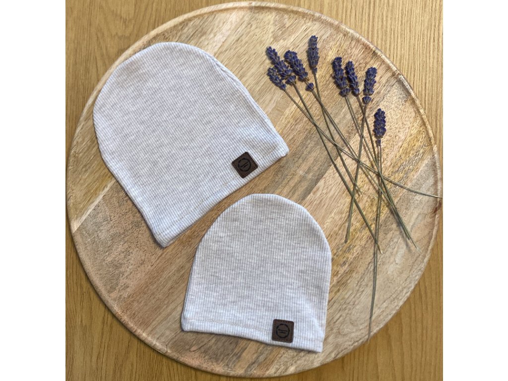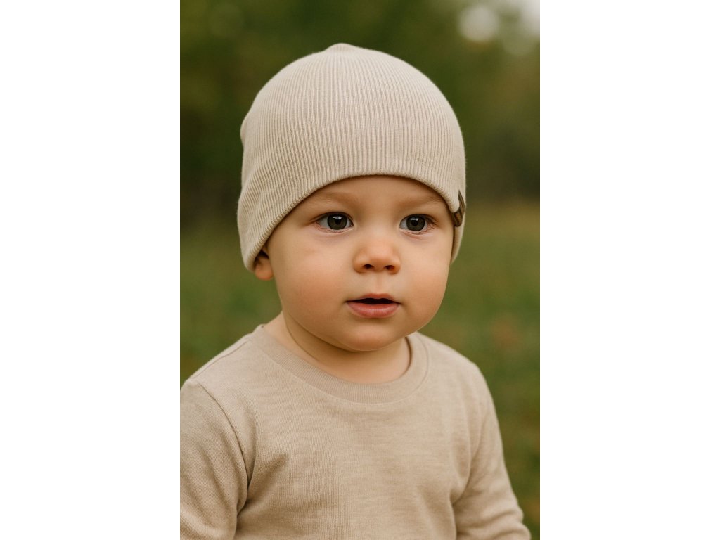 Dětská bavlněná čepice ze žebrovaného úpletu.