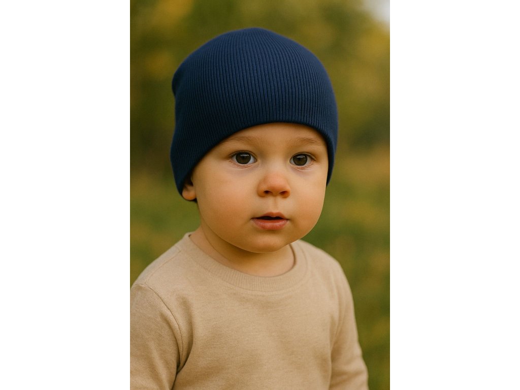 Dětská bavlněná čepice ze žebrovaného úpletu. Vyniká úžasnou pružností, jemností a hebkostí pro příjemné nošení.