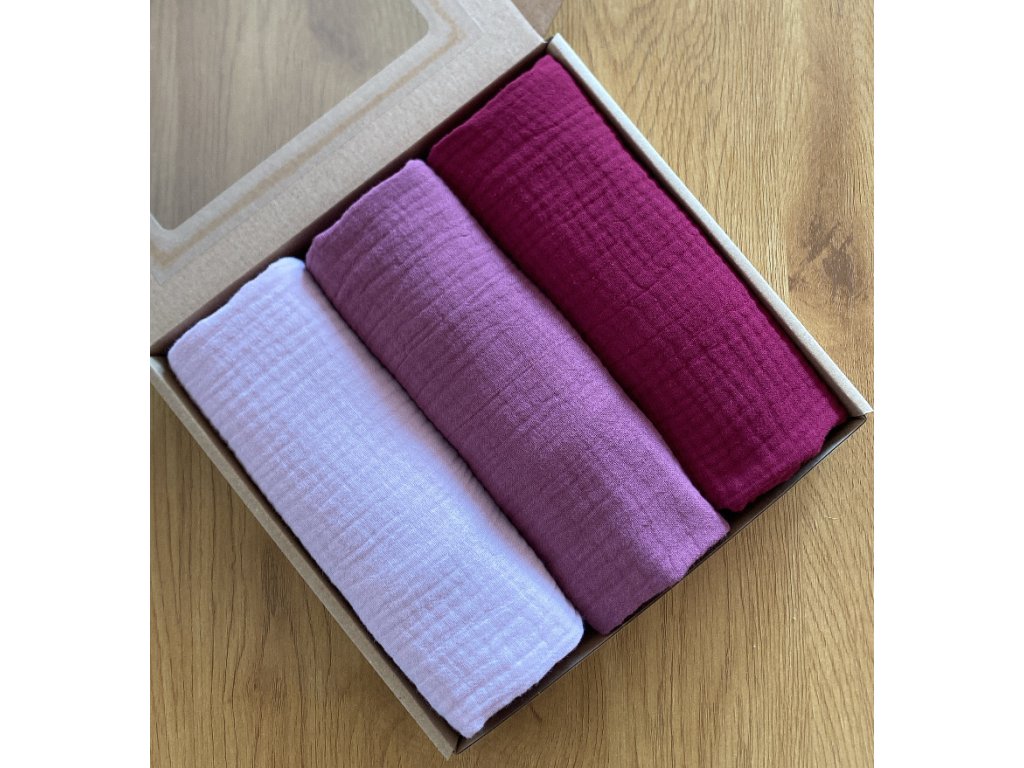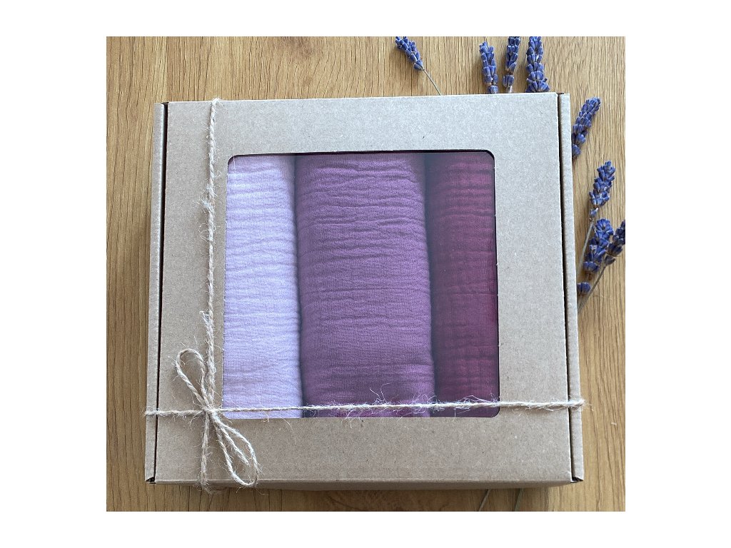 Nabízíme Vám již sestavenou dárkovou krabičku našich utěrek z 3 vrstvého mušelínu ze 100% bavlny s úžasnou savostí.