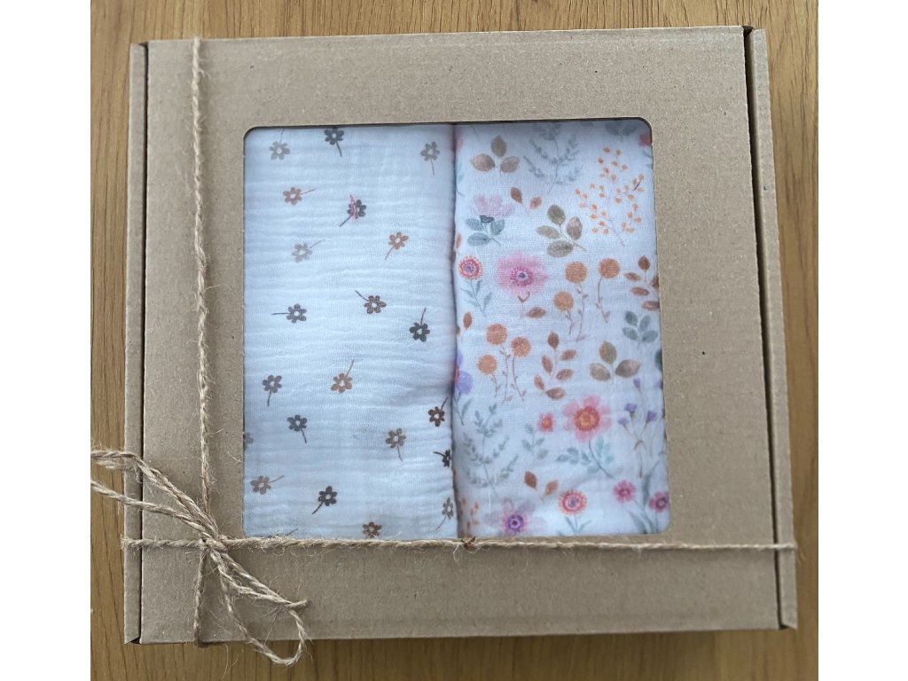 Nabízíme Vám již sestavenou dárkovou krabičku našich mušelínových plen.