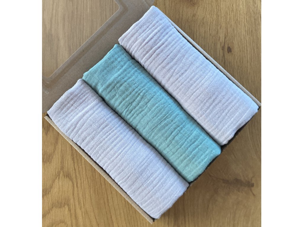 Nabízíme Vám již sestavenou dárkovou krabičku našich utěrek z 3 vrstvého mušelínu ze 100% bavlny s úžasnou savostí.