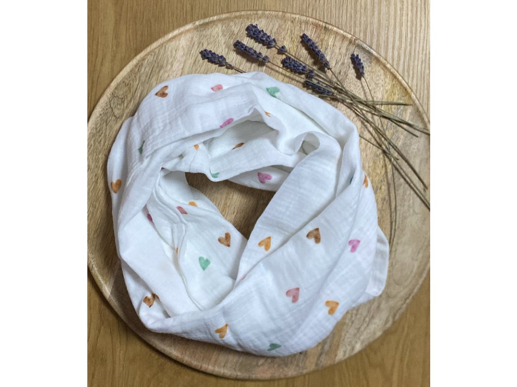 Kruhová šála ušita z mušelínu ze 100% bavlny. Je krásným doplňkem a podtrhne krásu každé ženy.