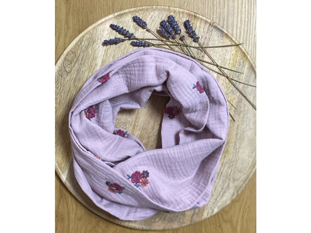 Kruhová šála- starorůžová s vyšívanými růžemi