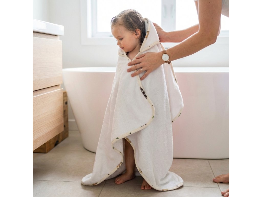Bambusové froté je výjimečně měkké a vysoce savé. Díky bambusovým vláknům je osuška prodyšná, jemná a vhodná pro miminka s citlivou nebo atopickou pokožkou. Struktura dodává osušce nejen krásný vzhled, ale i extra hebkost.