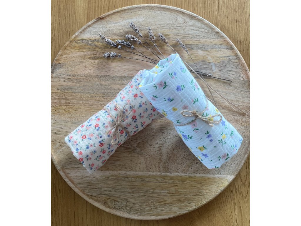 Mušelínová plena- květiny na smetanové