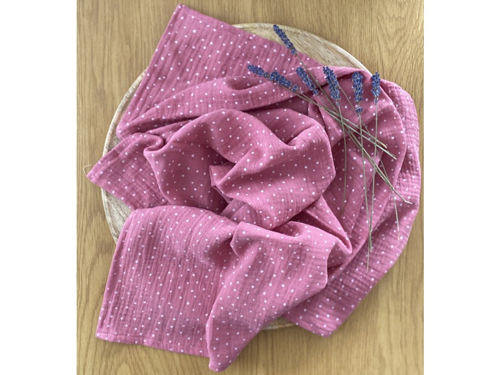 Mušelínová plena- růžová s drobným bílým puntíkem