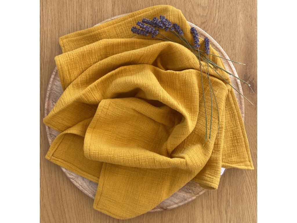 Mušelínová plena s bambusem- hořčicová