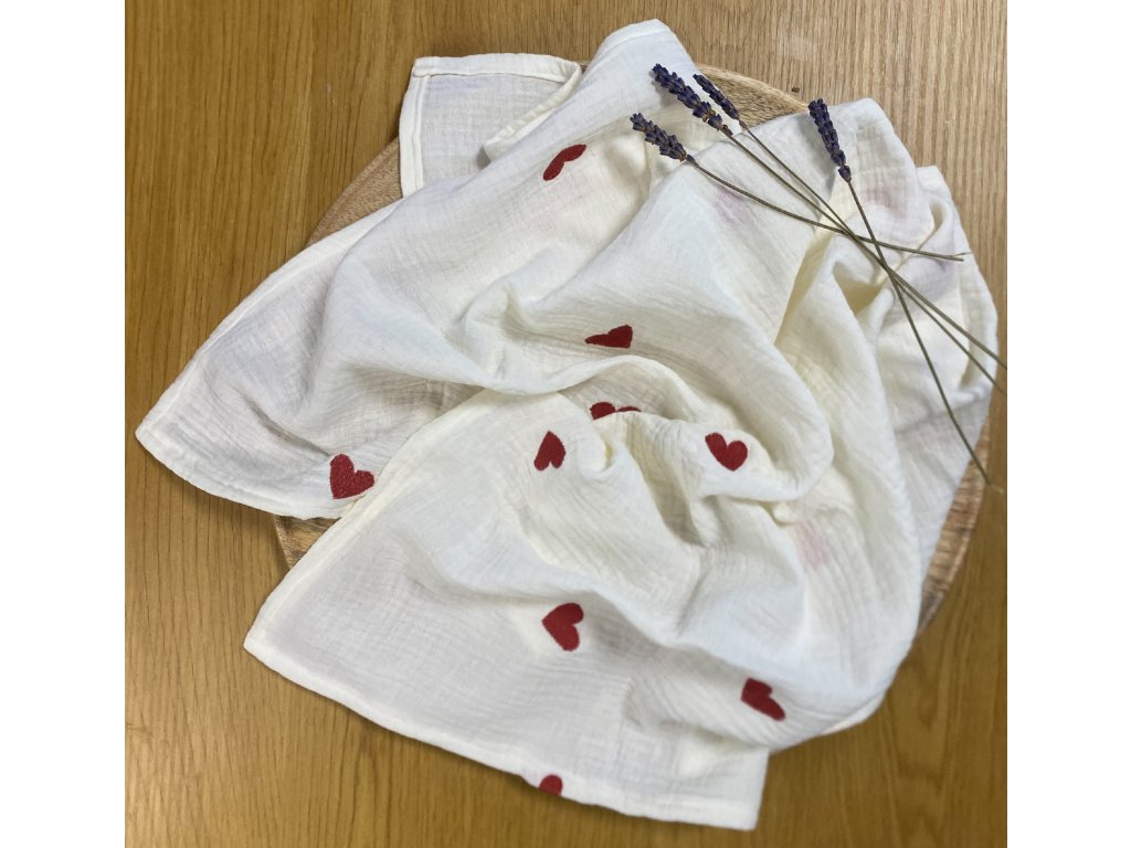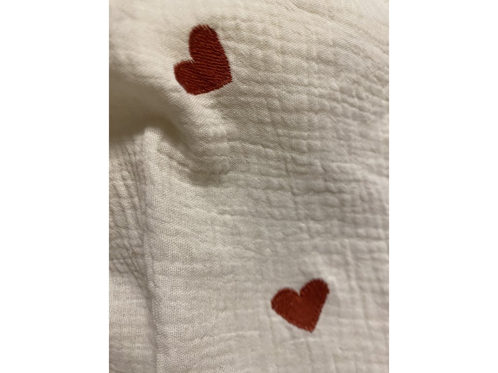 Mušelínová plena- smetanová s vyšívanými srdci
