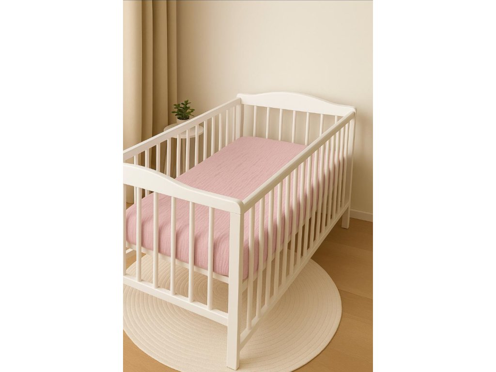 Mušelínové prostěradlo do dětské postýlky 120 x 60 cm- světle růžové