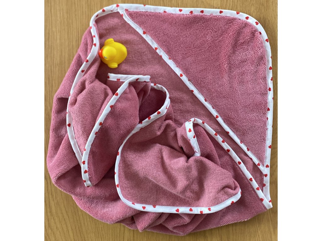 Osuška z bambusového froté růžová s červenými srdci