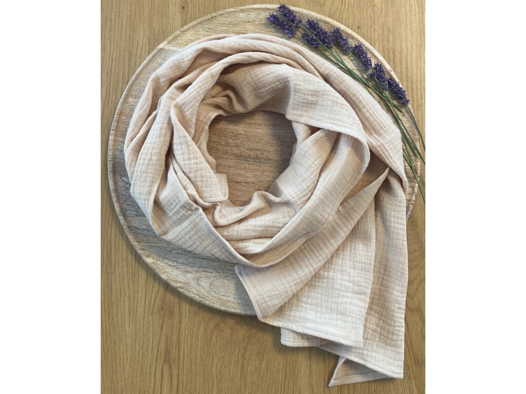Šála ušita z mušelínu ze 100% bavlny, kterou lze uvázat na krk, jako šálu/šátek nebo jako přehoz přes ramena. Je krásným doplňkem a podtrhne krásu každé ženy.